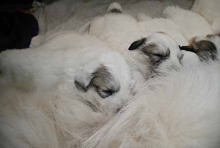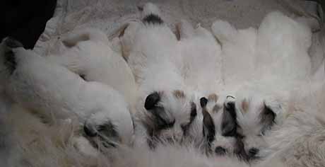 "Flip-Flop," the only female of the six pups is pictured on the far left. "Stash," named for his mustache, is shown next to her.